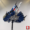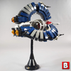 This model is minifigure scale + 10%ish and also includes a posable display stand.