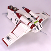 The Republic Gunship or LAAT (Low Altitude Assault Transport) can do it all. This heavily armed repulsorlift is effective in air-to-air and air-to-ground combat as well as troop/supply transport. They played a key roll in nearly all atmospheric combat in the clone wars, and are among the most well recognized and beloved ships from this era in the Star Wars universe. This minifigure scale brick-build model has an excellent smooth shape. It's built strong, holds two minifigures in the cockpits, and has functioning sliding doors with considerable space in the hull.